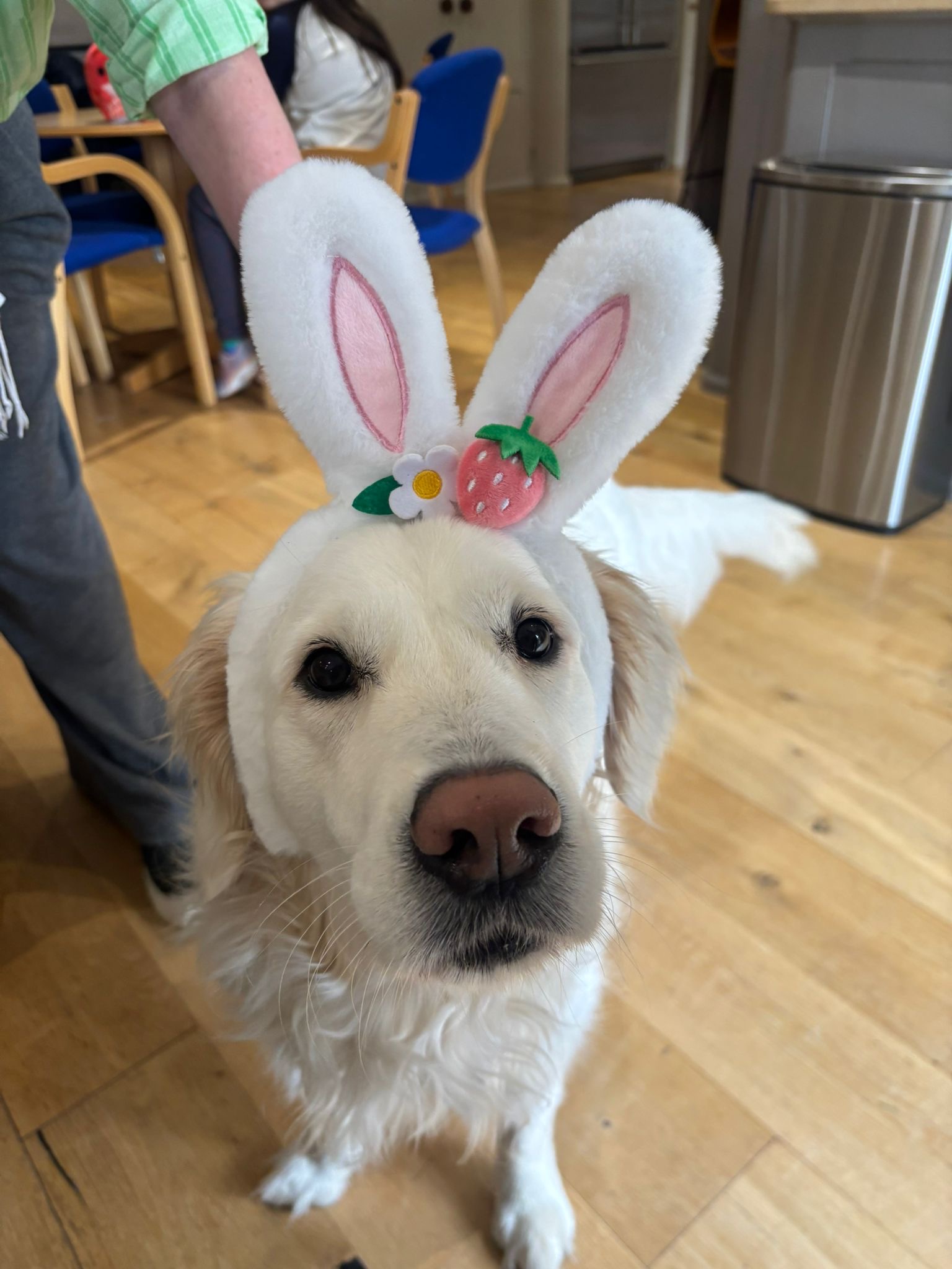 Lola our resident therapy dog has recently turned into the Easter Bunny!